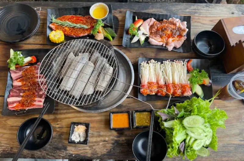 달랏에서 가장 인기 있는 바비큐 전문점 중 하나인 꾸아 항 느엉 머우 딕은 현지인들과 한국인 관광객들 모두에게 사랑받는 특별한 맛집입니다. 이곳의 가장 큰 특징은 한국어 메뉴가 준비되어 있다는 점으로 언어 장벽 없이 편안하게 식사를 즐길 수 있습니다. 레스토랑의 분위기는 전형적인 베트남 길거리 바비큐의 정취를 그대로 살린 캐주얼한 스타일입니다. 작은 플라스틱 의자와 테이블이 놓여있고 주방에서는 숯불 위에서 고기가 지글지글 구워지는 소리와 향긋한 냄새가 끊이지 않습니다. 이런 소박하면서도 활기찬 분위기가 이곳만의 독특한 매력을 만들어냅니다.